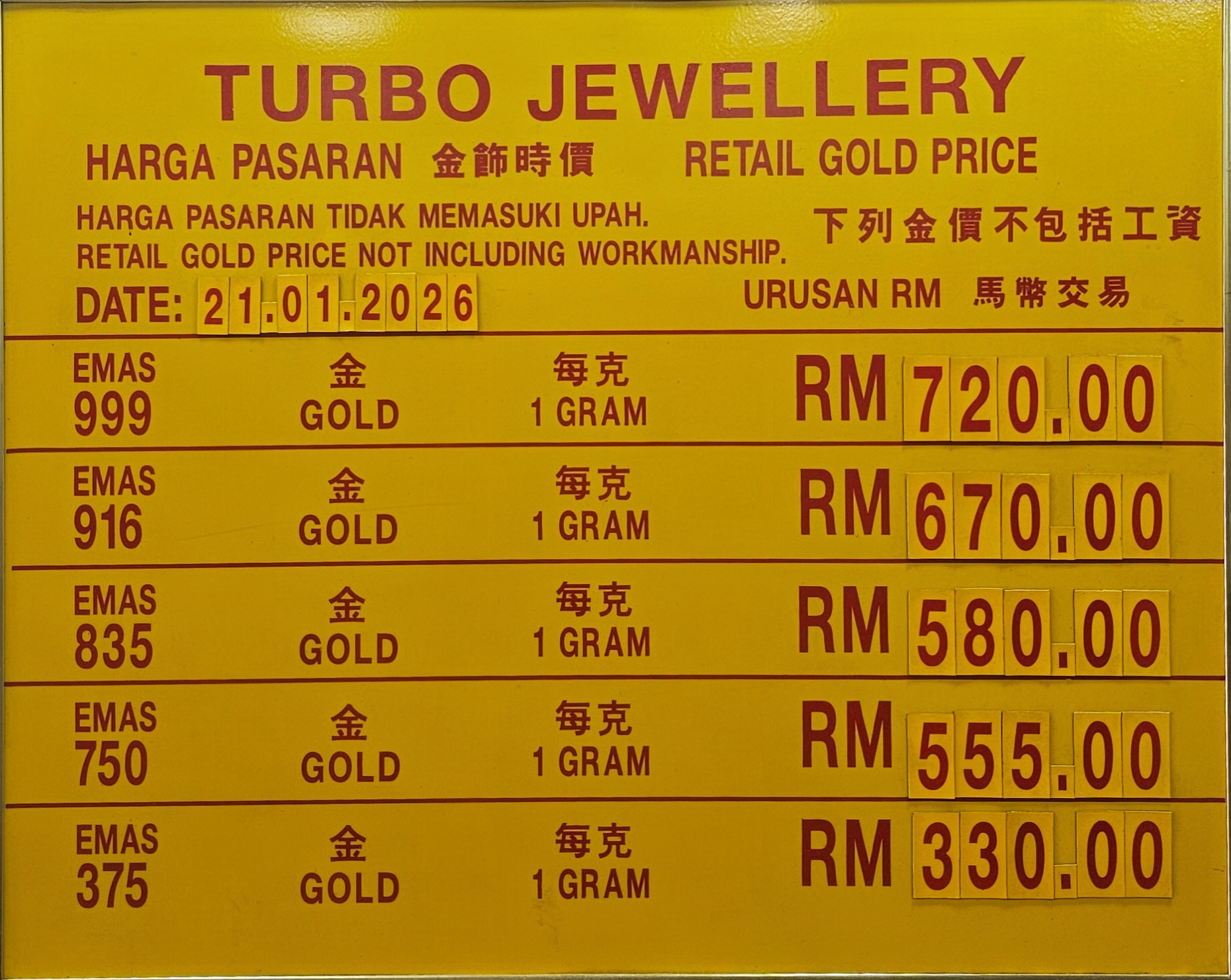 Gold Jewellery Price 黄金首饰价格